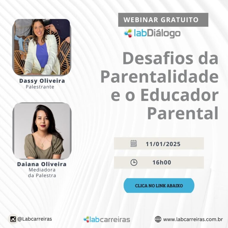 Estamos muito animados para apresentar mais um encontro transformador no LabDiálogo! Com a participação especial de Dassy Oliveira, nossa palestrante explorará os principais desafios da parentalidade e o papel essencial do educador parental. ✨ Tópicos em destaque: 👨👩👧 A relação entre pais e filhos: Entenda como a qualidade do vínculo afetivo pode moldar o comportamento…