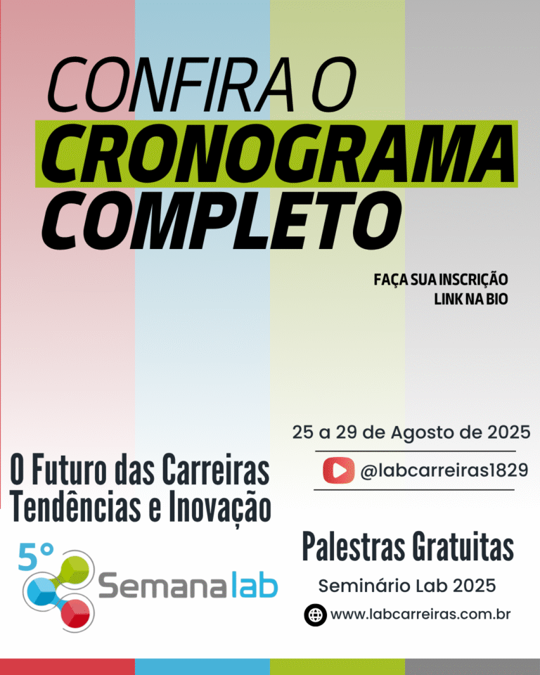 25 a 29 de agosto – oficinas gratuitas pela manhã, masterclasses premium à tarde e palestras gratuitas à noite. 25/08 – Segunda-feira 🕘 Oficina gratuita – 9hSoft Skills para o Futuro: Inteligência Emocional e AdaptabilidadeUm mergulho em duas das competências mais exigidas no mercado de trabalho moderno. Nesta oficina, você vai vivenciar práticas para desenvolver…